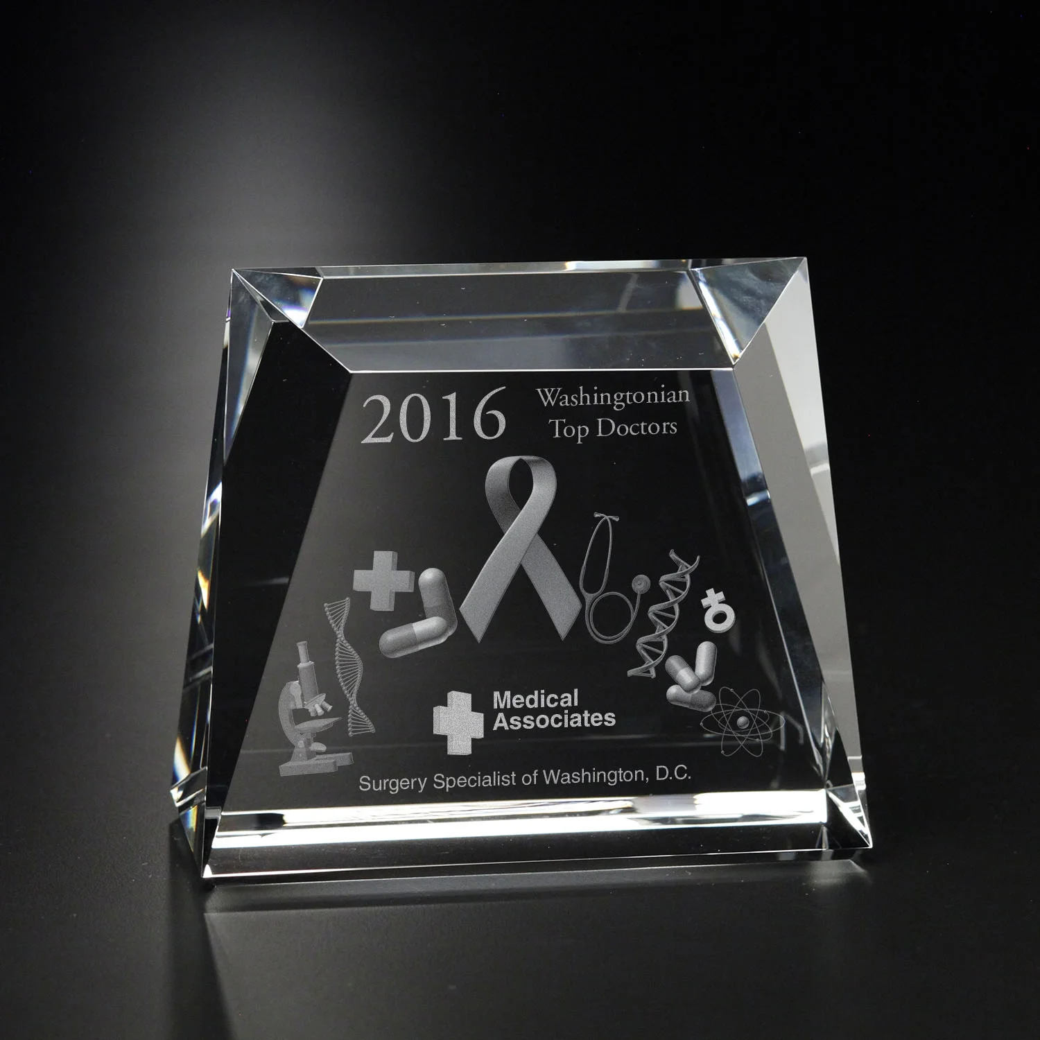 Our Crystal collection is comprised of the absolute highest grade of clear optical crystal making it the top choice for etching. Each piece is beveled and hand polished to achieve maximum refraction. Each come packaged in an impressive black velvet presentation box.